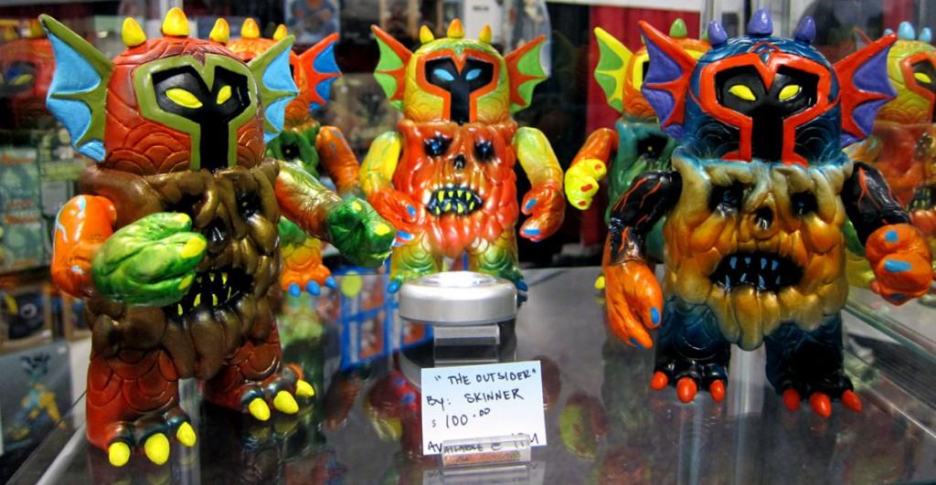 Going against form (for me), I left DesignerCon not with resin or plastic-based Skinnerisms, but rather this green Lurker plush sewn by the lovely Lindy at Color Ink Book‘s booth. Don’t sleep on Skinner’s Outsiders though. They’re 8-inches of resin hand-cast by Motorbot and hand-painted by Skinner. What’s left of the edition of just ten pieces is available online here.